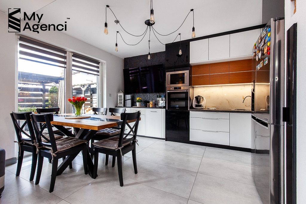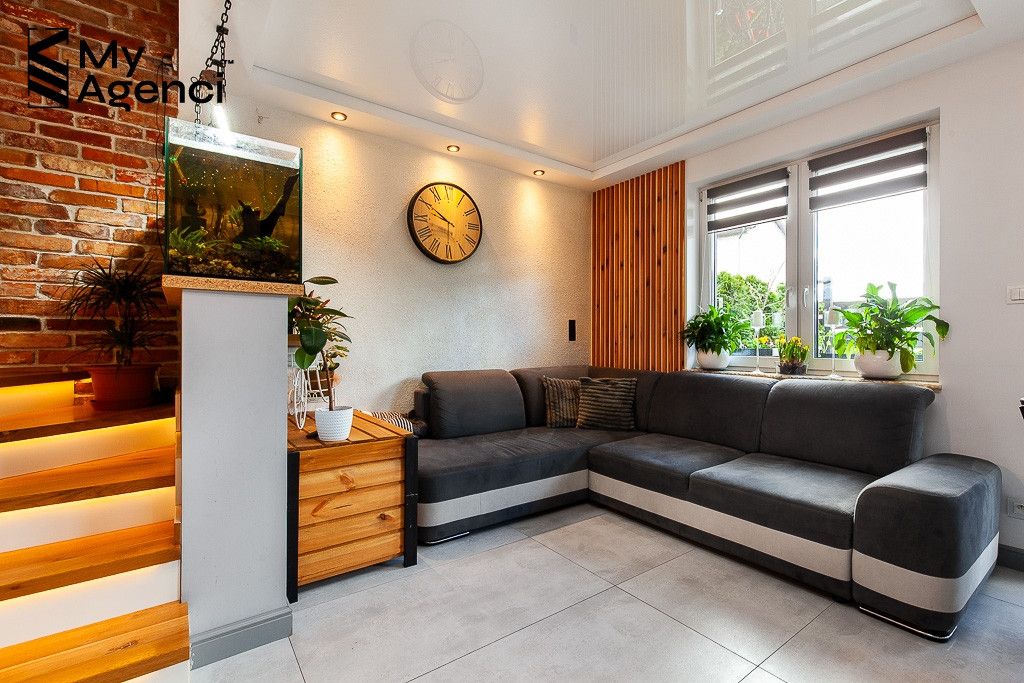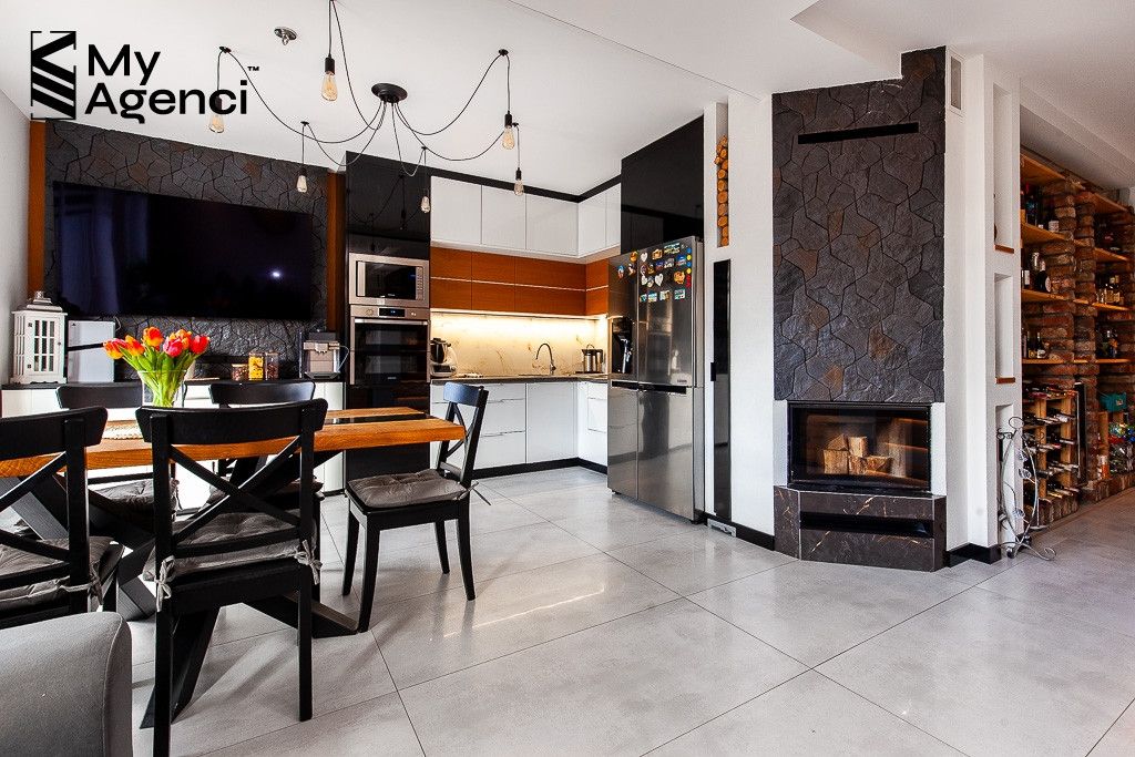 Nieruchomość została zakupiona w stanie deweloperskim w 2019 roku i była systematycznie wykańczana i odświeżana w kolejnych latach. Nie wymaga remontów ani większych nakładów finansowych. Lokal wyposażony jest m.in. w klimatyzację (na parterze), kominek czy odkurzacz centralny. Rozprowadzony jest system alarmowy. Ogrzewanie gazowe (Viessmann), podłogówka na parterze i w korytarzu i łazience na piętrze, w pozostałych pomieszczeniach grzejniki ścienne. Brama garażowa Wiśniowski, otwierana automatycznie.