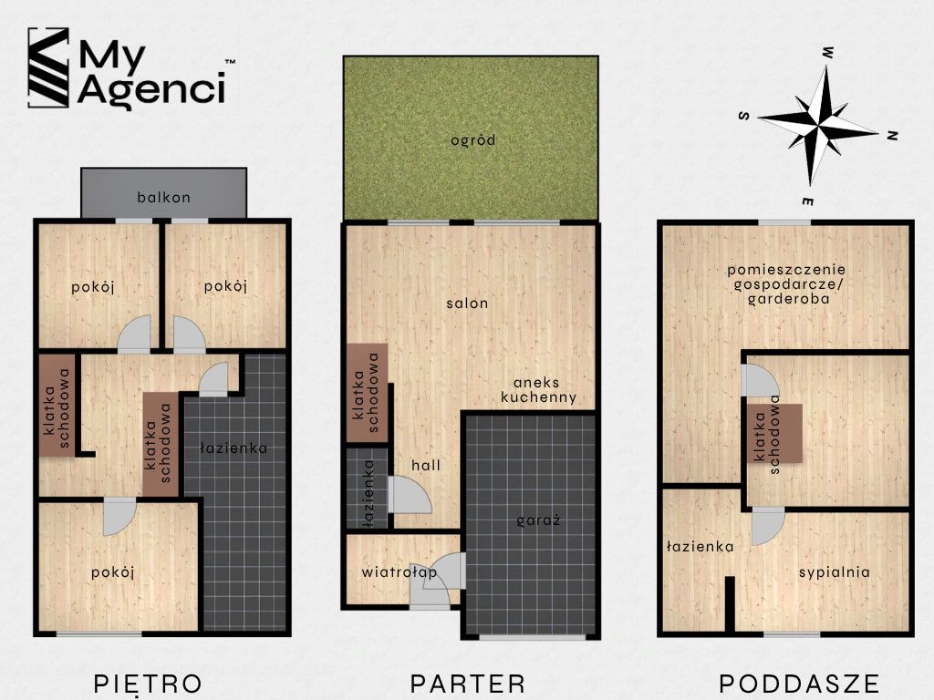 Parter (54,79 m2) składa się z: