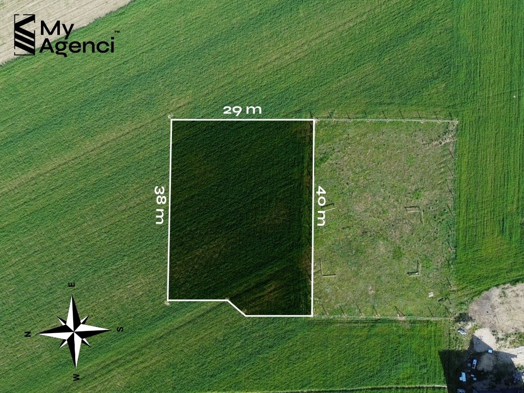 Działka ma zapewniony dostęp do drogi publicznej, ulicy Myśliwskiej, poprzez sprzedaż udziałów w działce drogowej wewnętrznej. Dostępne media: woda i prąd bezpośrednio w ulicy, kanalizacji i gazu brak. Działka jest w kształcie prostokątu o wymiarach ok.: 29 m x 40 m, położona jest na płaskim terenie, z bez zalesienia, wśród licznej zabudowy jednorodzinnej.