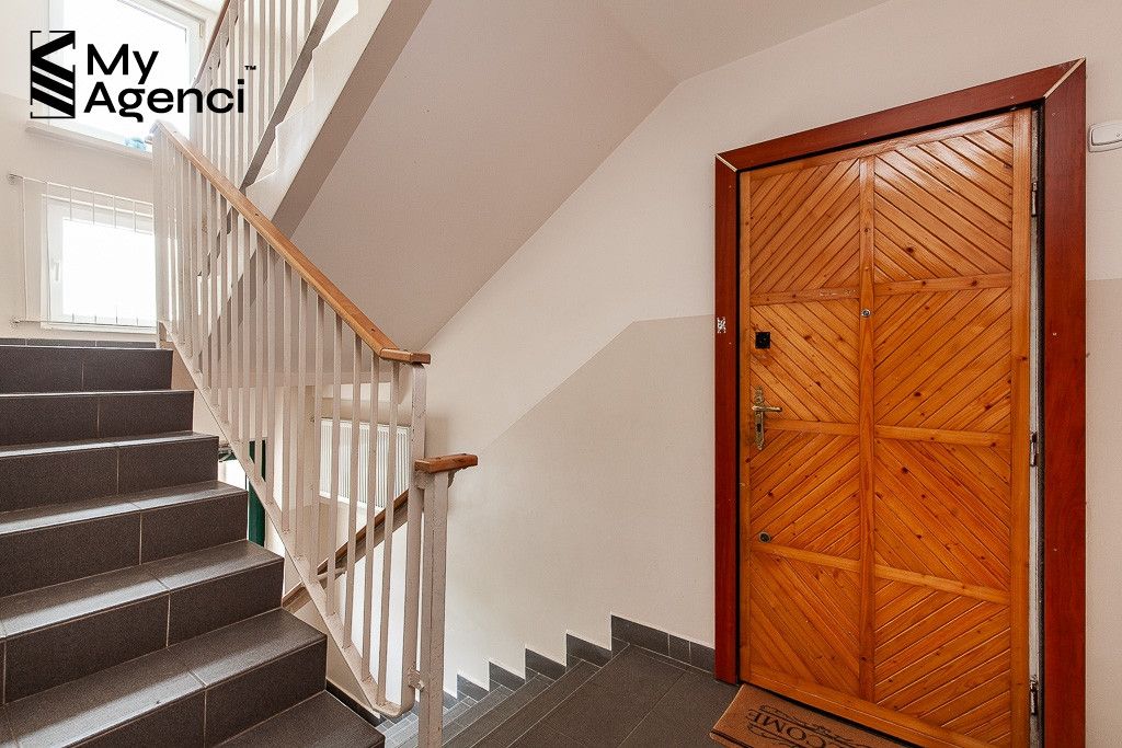 Do mieszkania przynależy piwnica o powierzchni 3 m2, miejsca postojowe zewnętrzne przed budynkiem, ogólnodostępne. Wystawa okien od strony północno wschodniej (okna kuchni i mniejszego pokoju) oraz południowo zachodniej (okna pokoju dziennego oraz większego pokoju). Z loggi widok na ogród ogólnodostępny i zieleń.