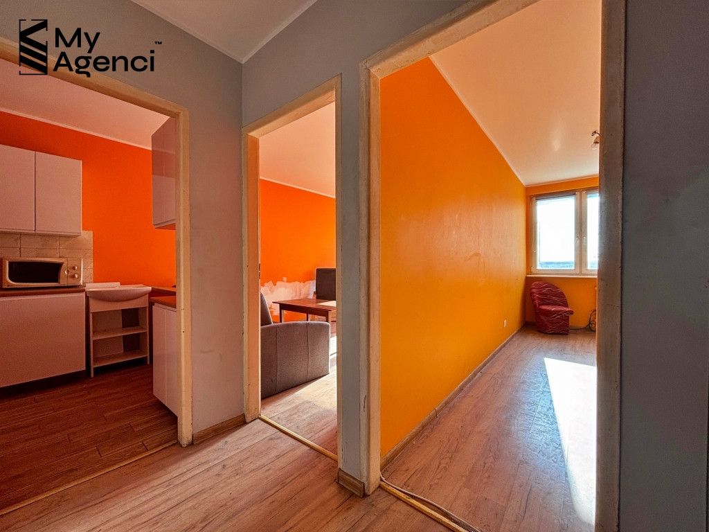 Na sprzedaż słoneczne dwupokojowe mieszkanie położone na szóstym piętrze w budynku dziesięciopiętrowym w Gdyni Witomino przy ulicy Konwaliowej.