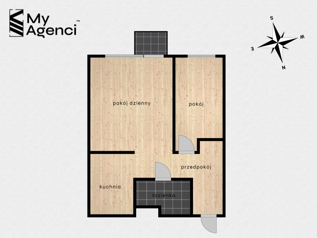 - pokoju dziennego z wyjściem na niewielki balkon - sypialni - kuchni - łazienki - przedpokoju.
