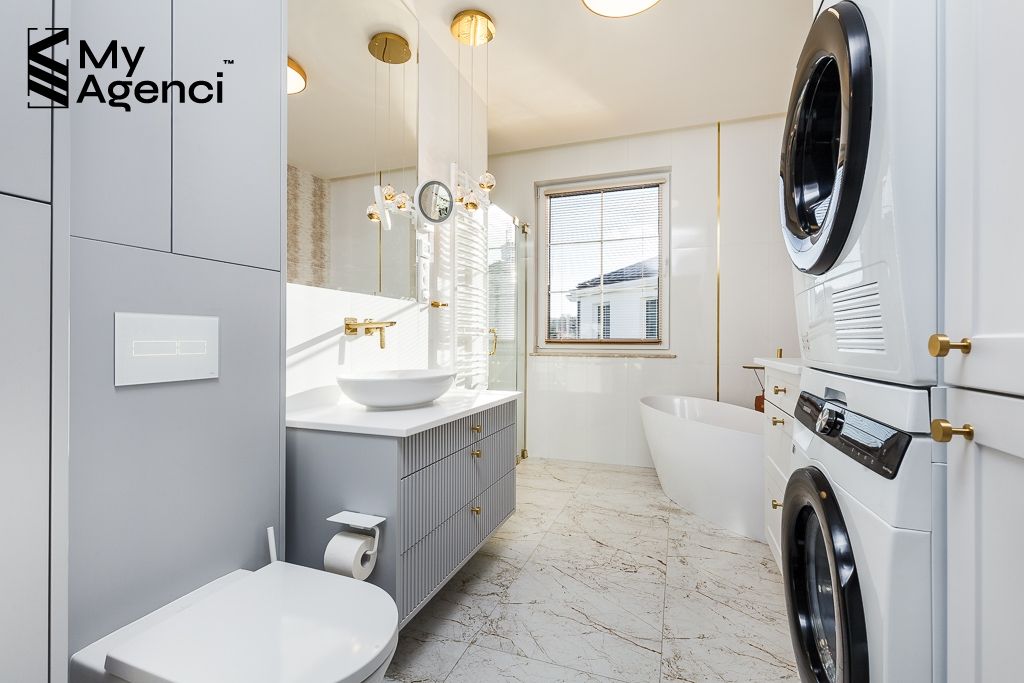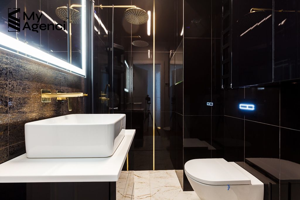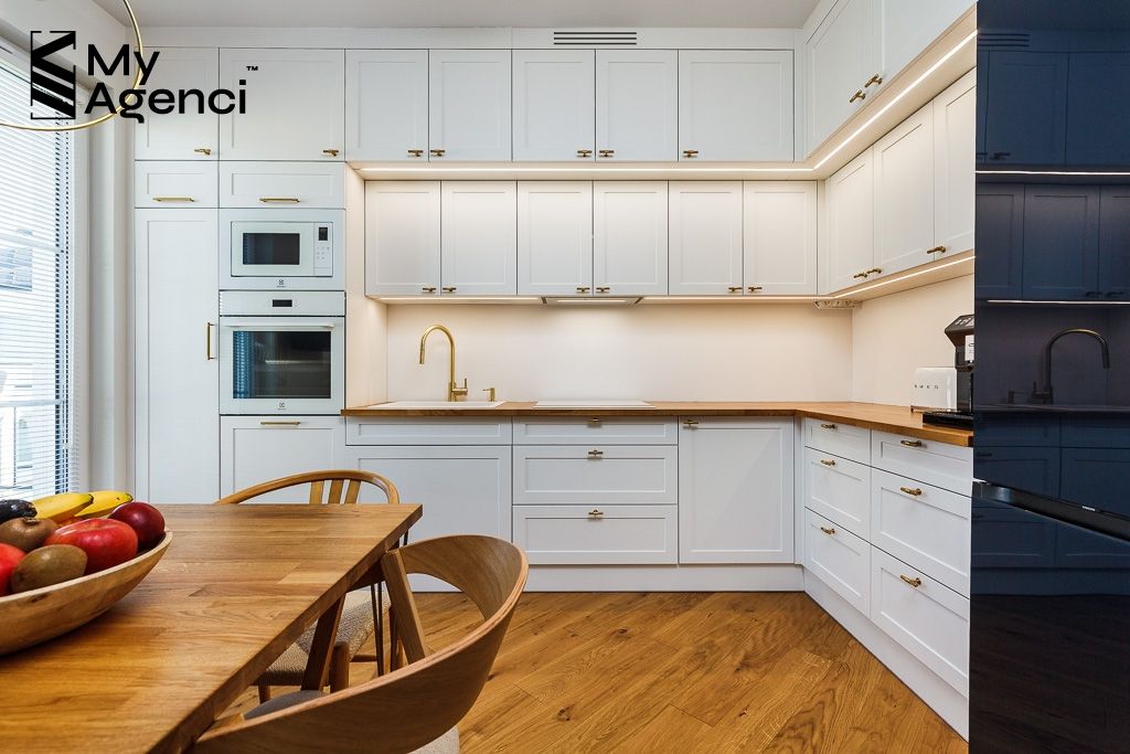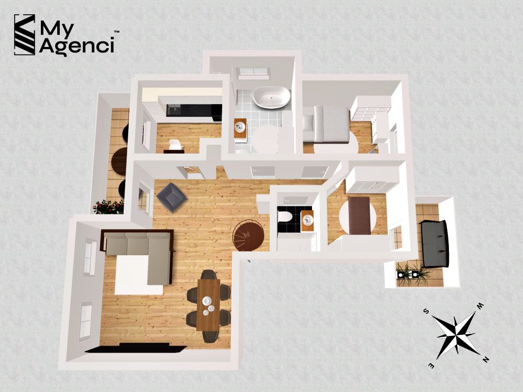 - przestronnego pokoju dziennego (28,63 m2) z wyjściem na słoneczny balkon - kuchni (10,64 m2) z wyjściem na balkon - pokoju (9,21 m2) - garderoby/pokoju (9,06 m2) z wyjściem na balkon - łazienki z wanną i prysznicem (8,90 m2) - łazienki z prysznicem (2,40 m2) - wiatrołapu i korytarza.