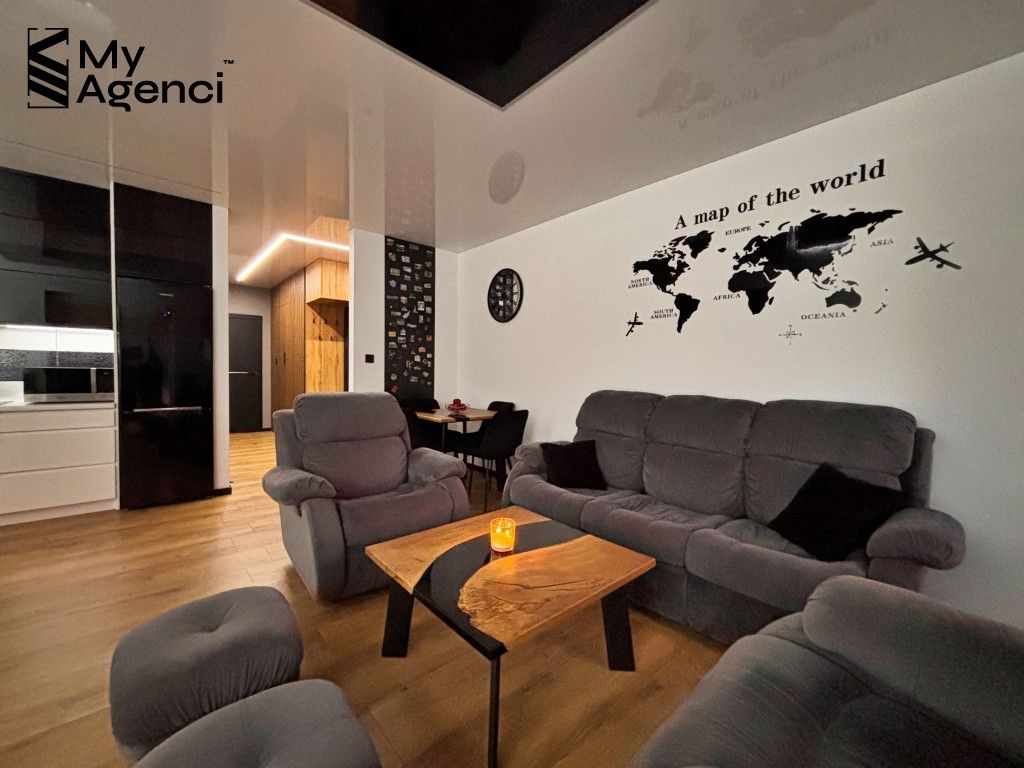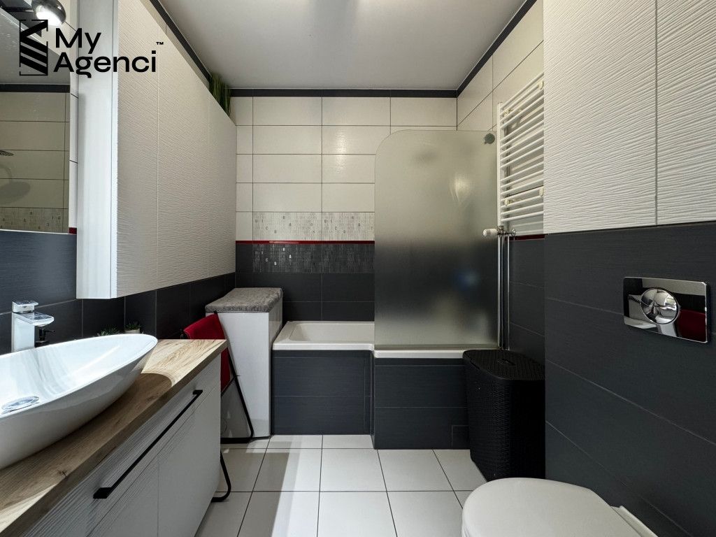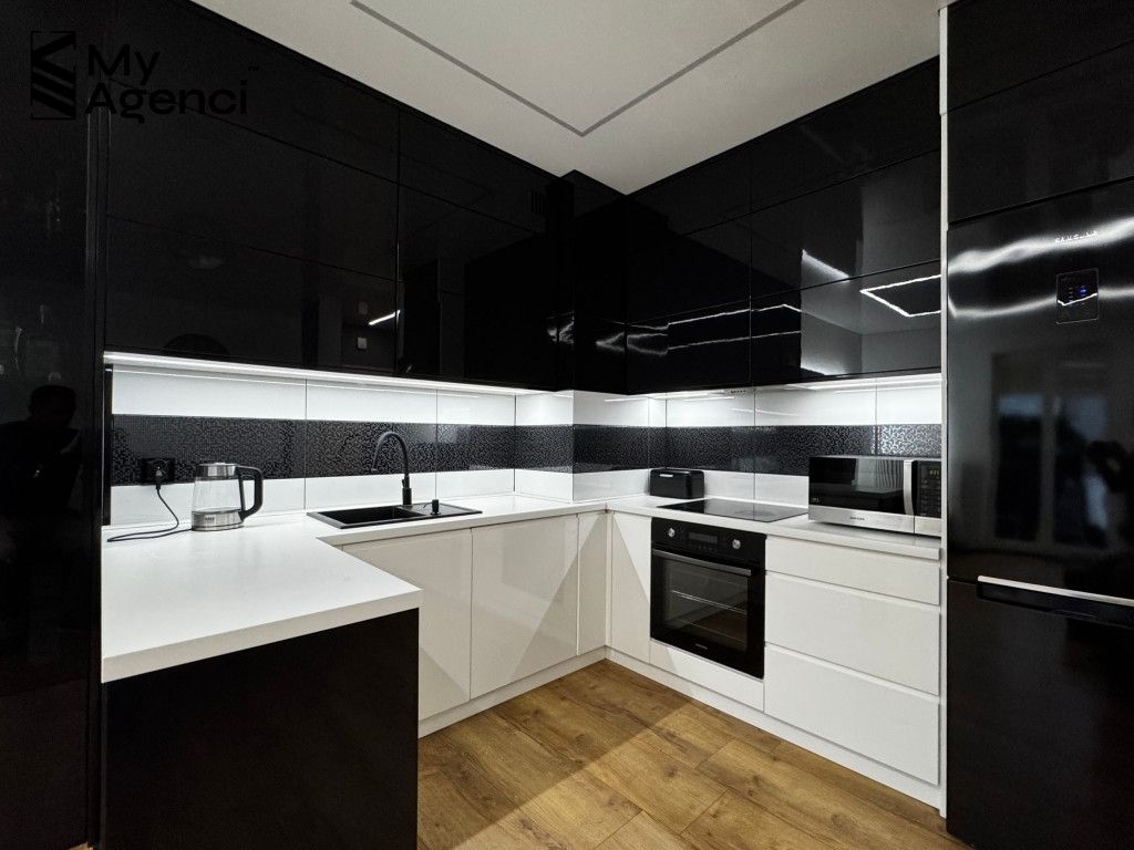 Mieszkanie zostało urządzone w 2014 roku i systematycznie odświeżane i remontowane w kolejnych latach. Kuchnia wyposażona jest w meble w zabudowie wraz ze sprzętem AGD (lodówka, płyta, piekarnik, zmywarka, pochłaniacz). W łazience wanna z prysznicem. Ogrzewanie mieszkania i wody z sieci miejskiej.
