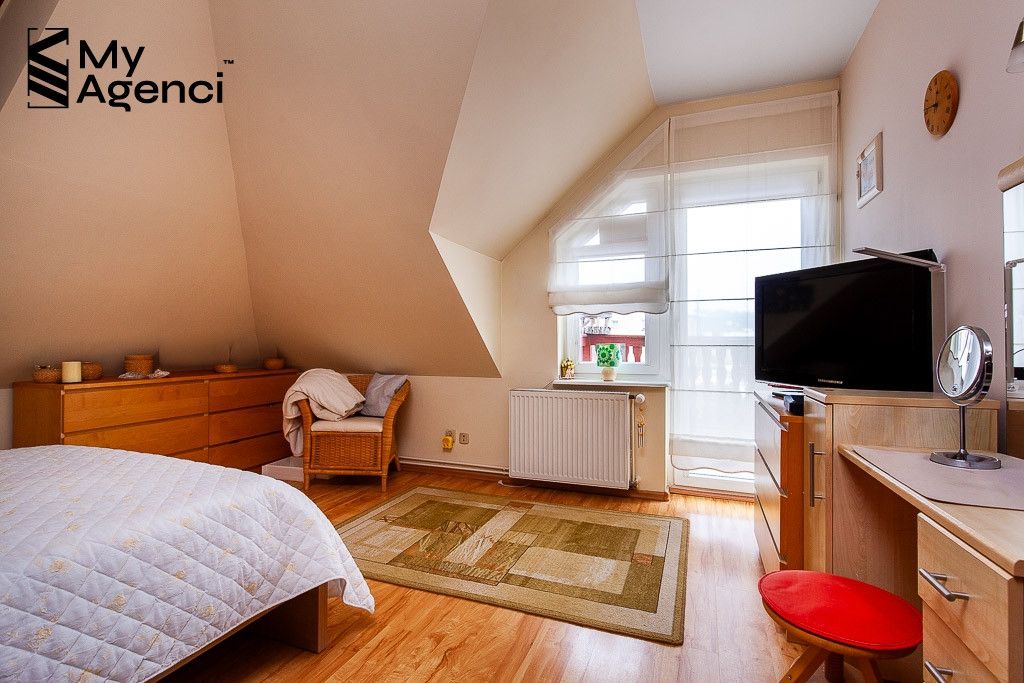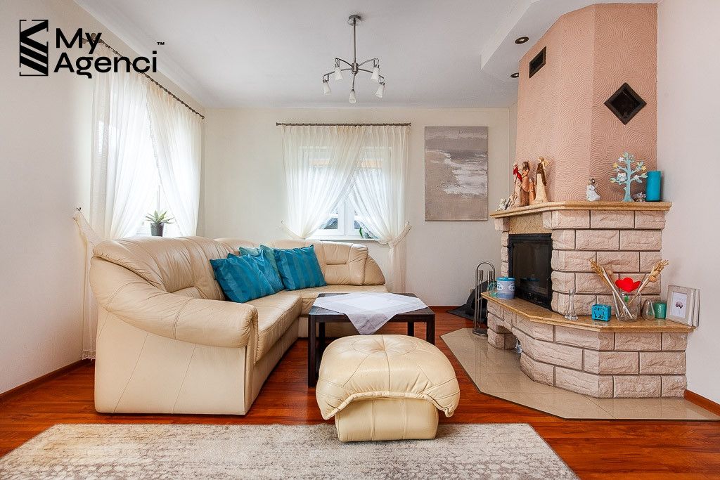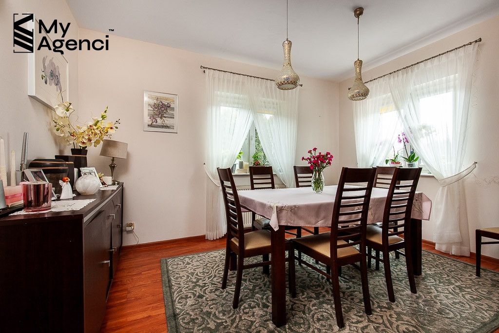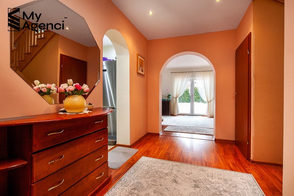 Dom ma przemyślany i bardzo funkcjonalny rozkład pomieszczeń. Urządzony jest w stylu klasycznym, wnętrza są przestronne, utrzymane w jasnej tonacji kolorystycznej. Wszystkie pomieszczenia są bardzo dobrze doświetlone dzięki licznym przeszkleniom. Dom jest zadbany i utrzymany w porządku. Meble i sprzęty pozostające na wyposażeniu do ustalenia, termin wydania również do uzgodnienia.