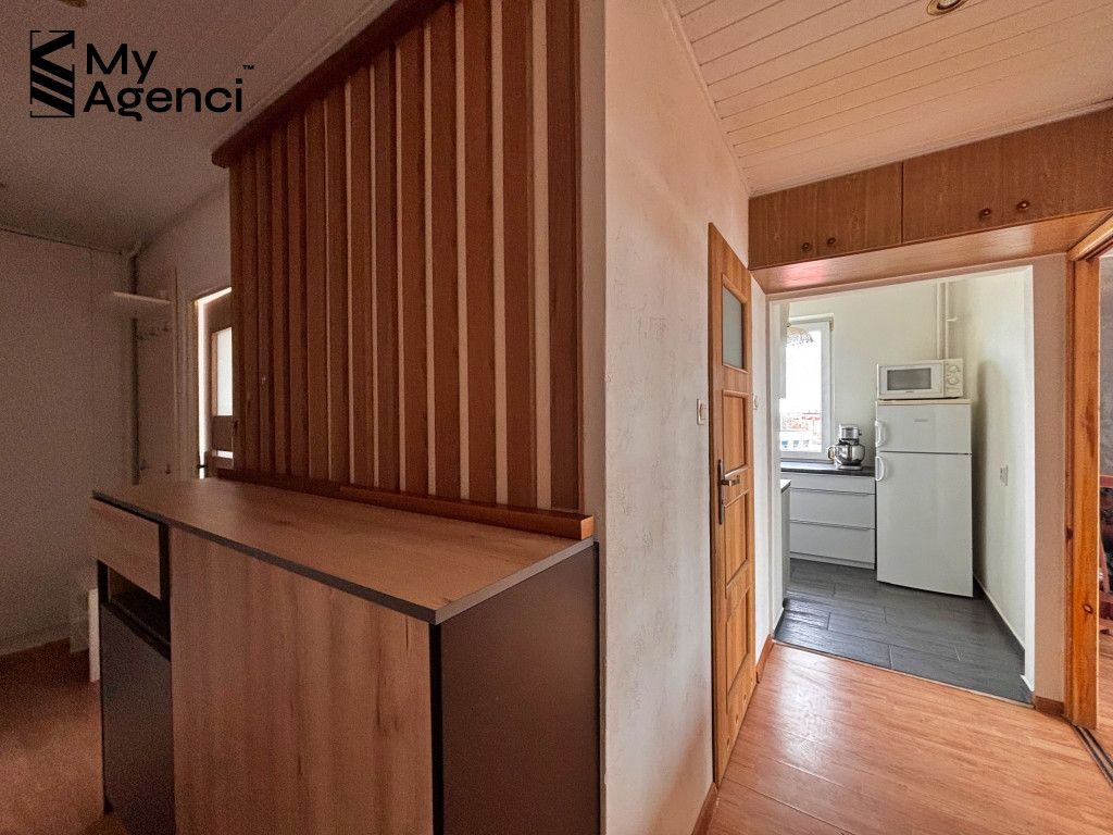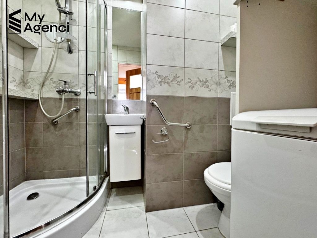 Mieszkanie jest czyste i zadbane. Na ścianach w pokojach położona jest farba, w łazienkach i kuchni glazura. Na podłogach w pokojach panele, w kuchni i łazience terakota. Kuchnia wyposażona jest w meble w zabudowie wraz ze sprzętem AGD (lodówka, kuchenka, pochłaniacz). W łazience m.in. kabina prysznicowa i pralka. Meble wolnostojące, sprzęty AGD, elementy dekoracyjne oraz oświetlenie pozostają na wyposażeniu. Termin wydania bezpośrednio po akcie i zapłacie całej ceny.