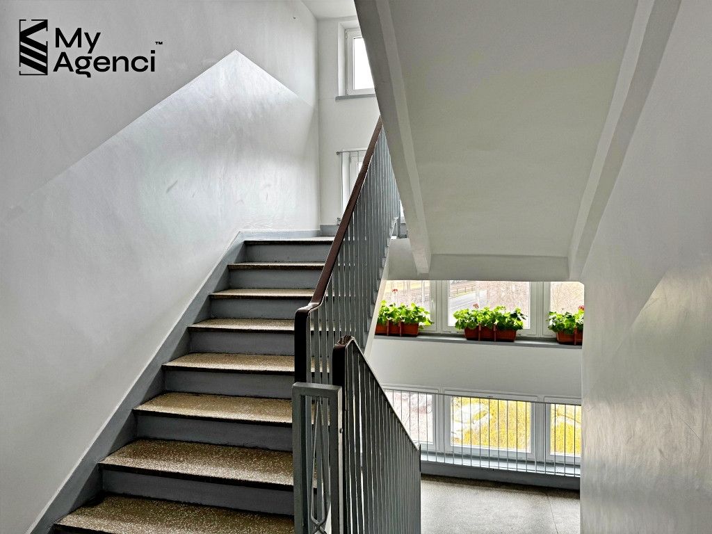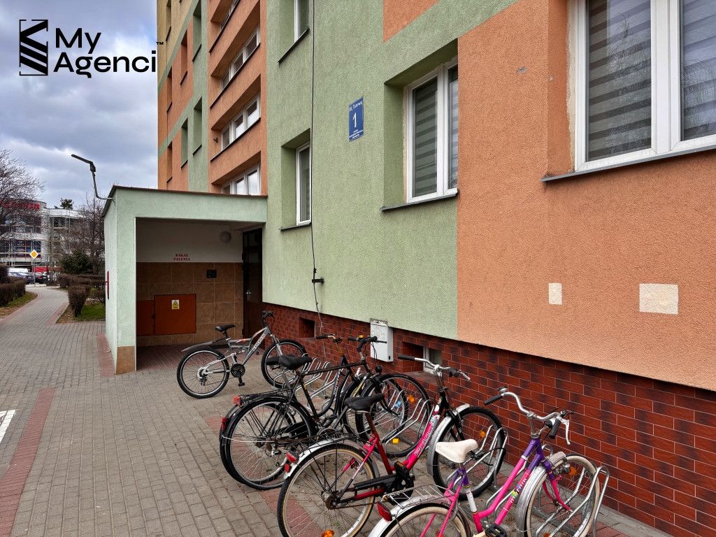 Budynek, w którym znajduje się mieszkanie, to 10-piętrowa zabudowa z lat 80. W budynku na poziomie -1 znajduje się piwnice, rowerownia oraz pomieszczenia gospodarcze. Klatka schodowa jest przestronna, wyposażona w nową cichobieżną windę, części wspólne bardzo dobrze utrzymane. Miejsca parkingowe naziemne, ogólnodostępne przed budynkiem.