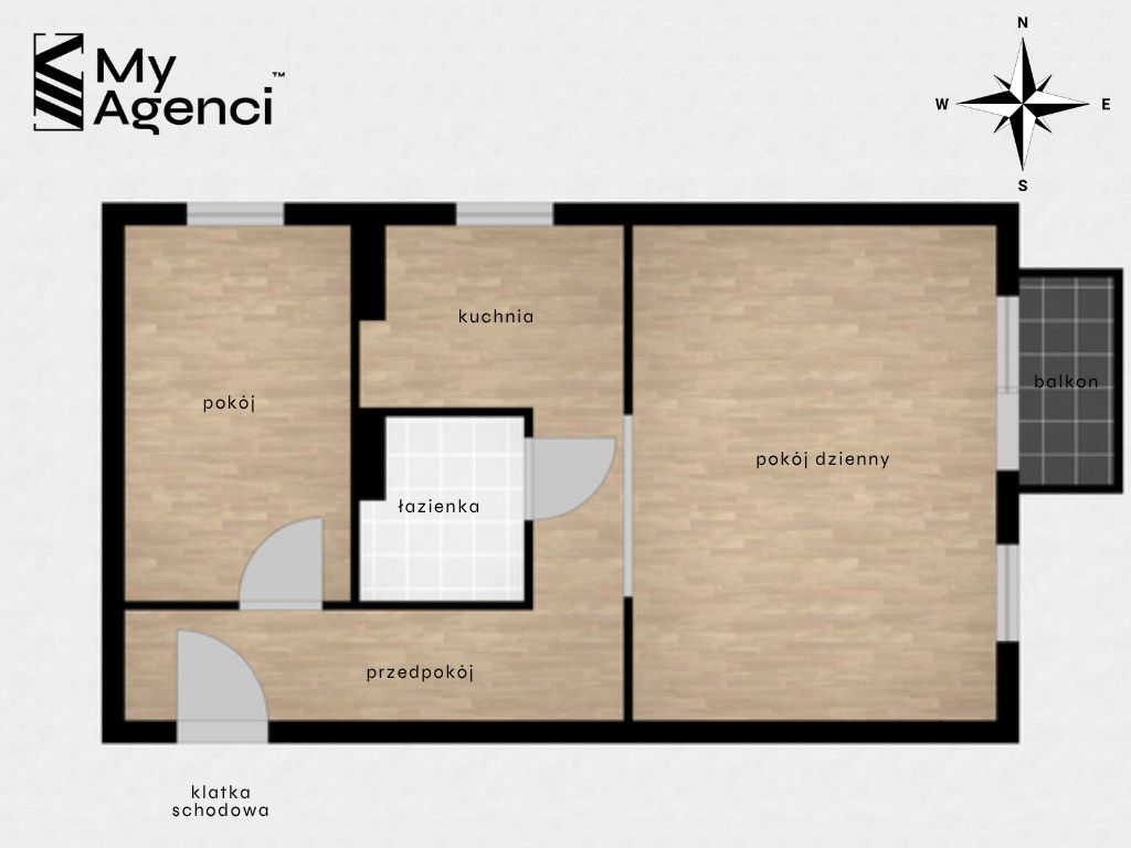 Mieszkanie o łącznej powierzchni użytkowej 46 m2 składa się z: