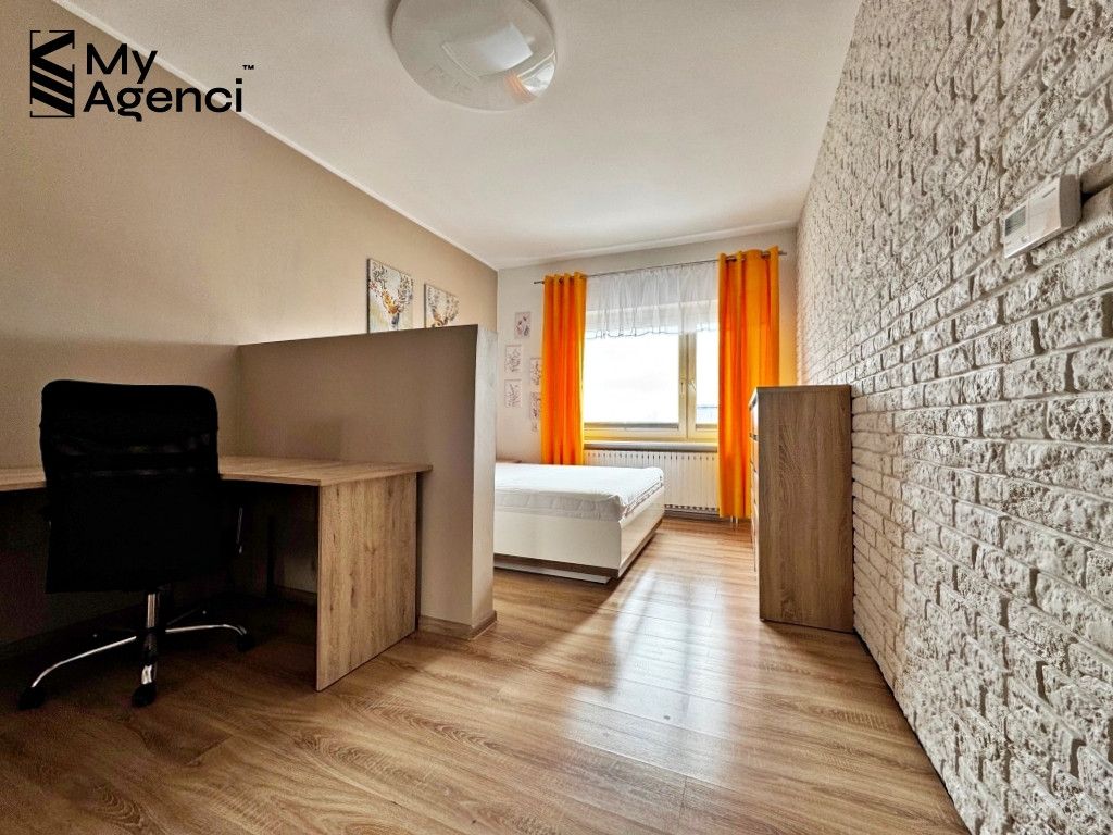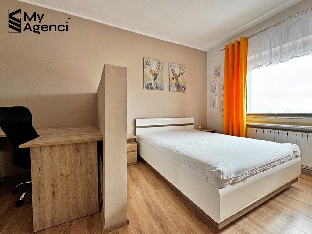 - sypialnia: łóżko, pojemna szafa, biurko, szafki nocne, komoda,